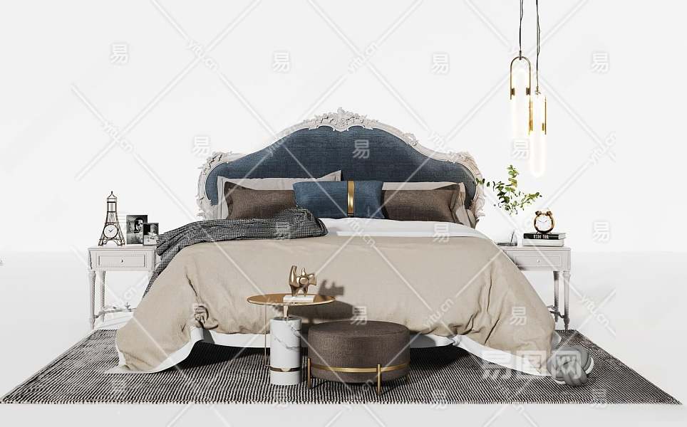法式双人床3D模型下载