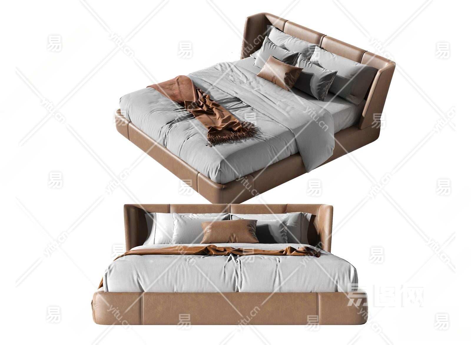 现代双人床3D模型下载