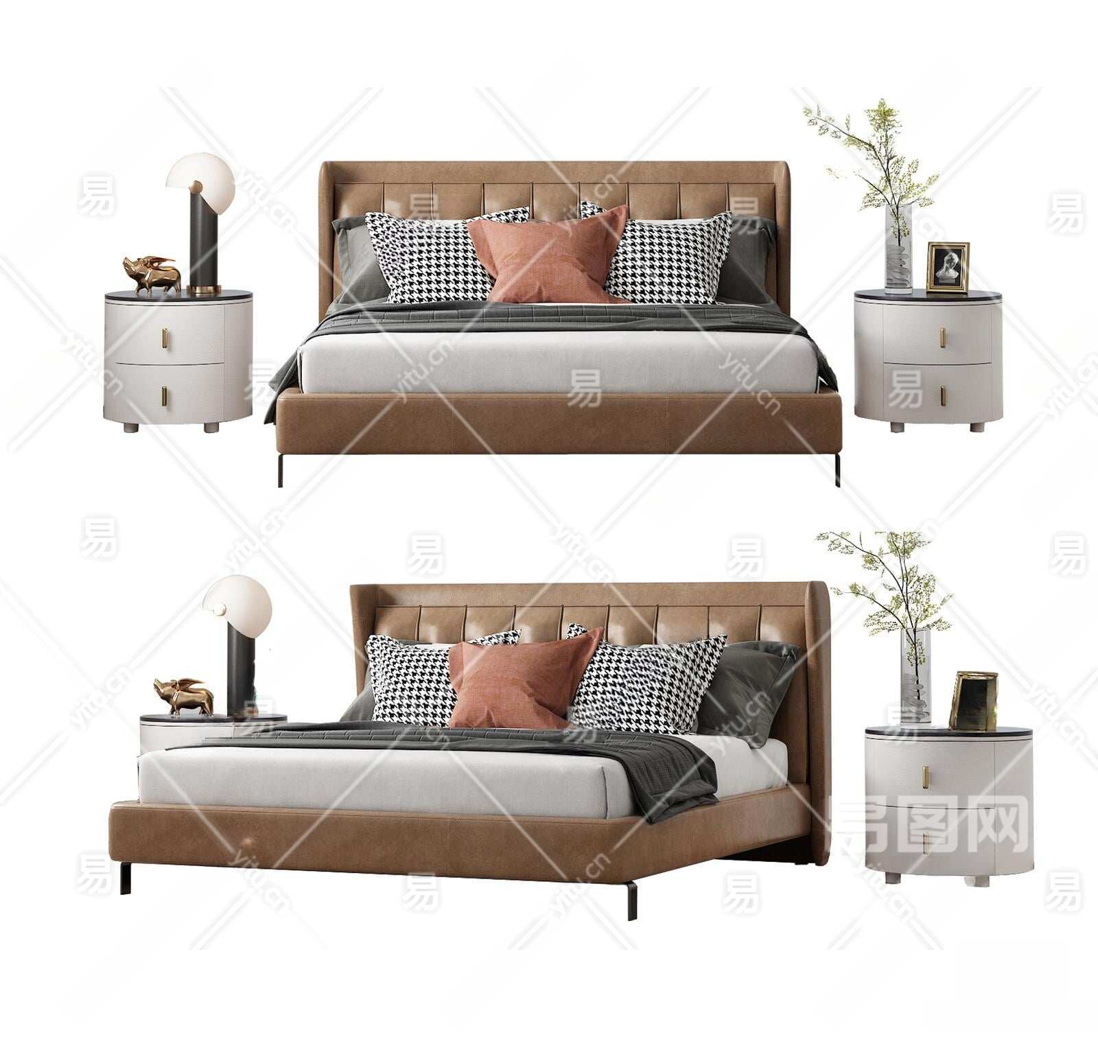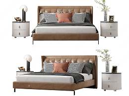 现代皮革双人床3D模型下载