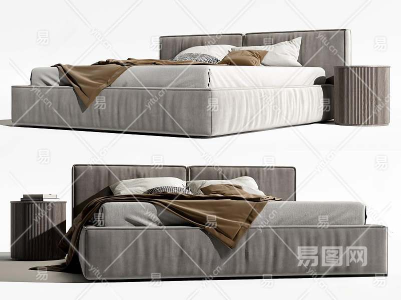 现代双人床3D模型下载