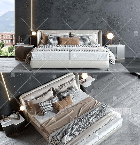 现代双人床3D模型下载