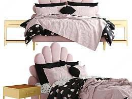 简欧双人床3D模型下载