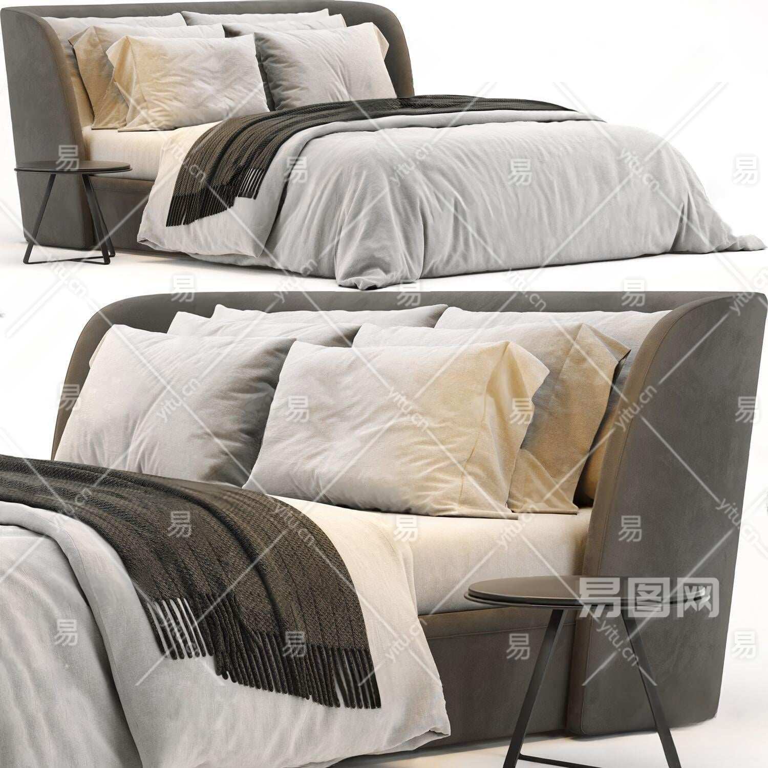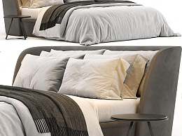 现代布艺双人床3D模型下载