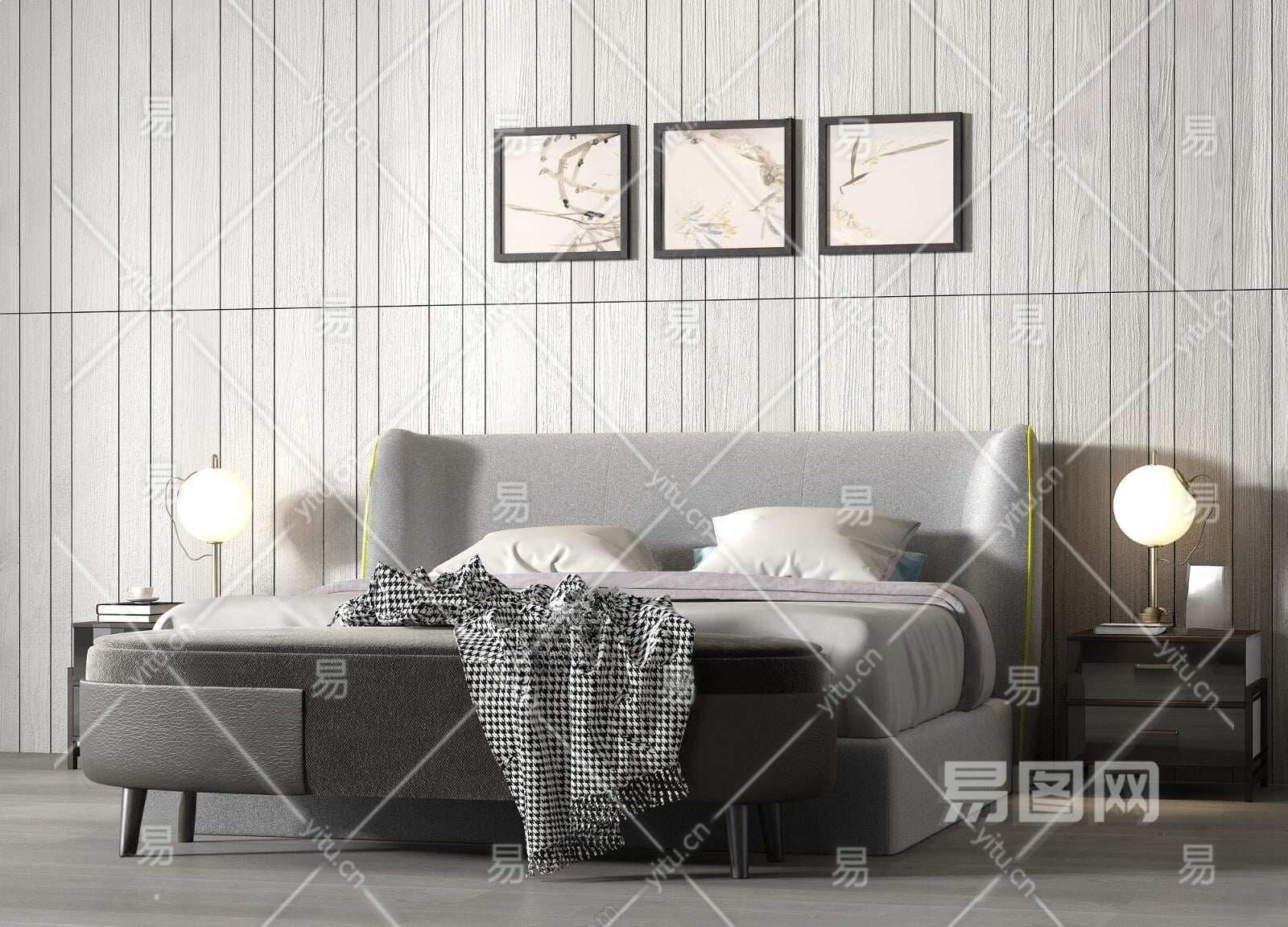 现代轻奢布艺双人床3D模型下载
