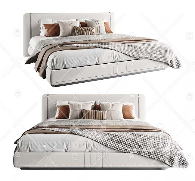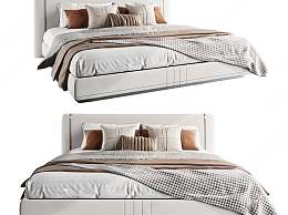 现代双人床3D模型下载