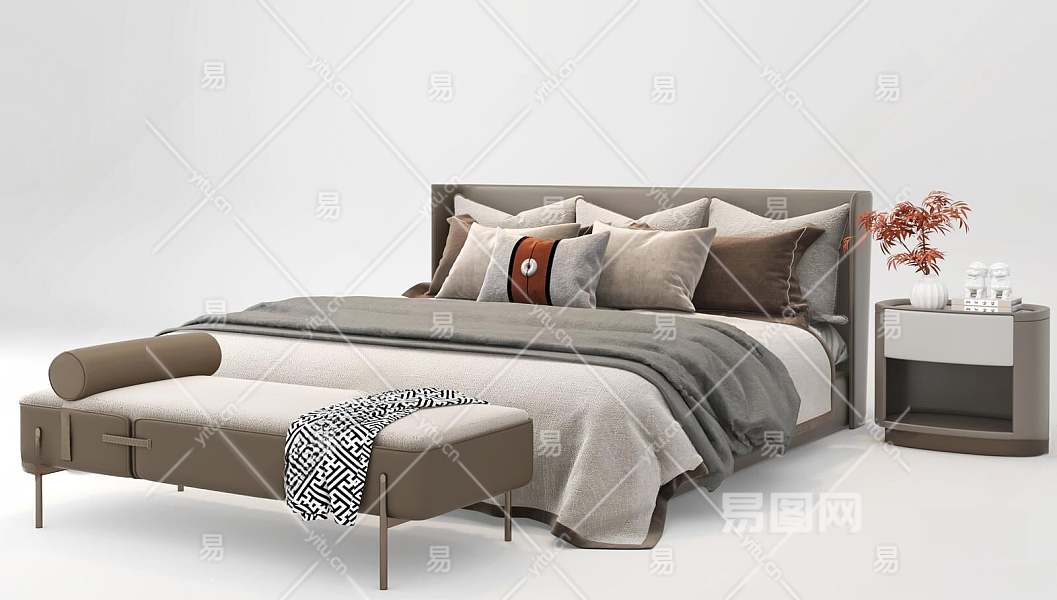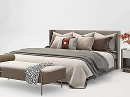 新中式双人床3D模型下载