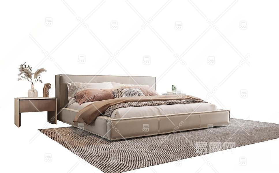 现代双人床3D模型下载