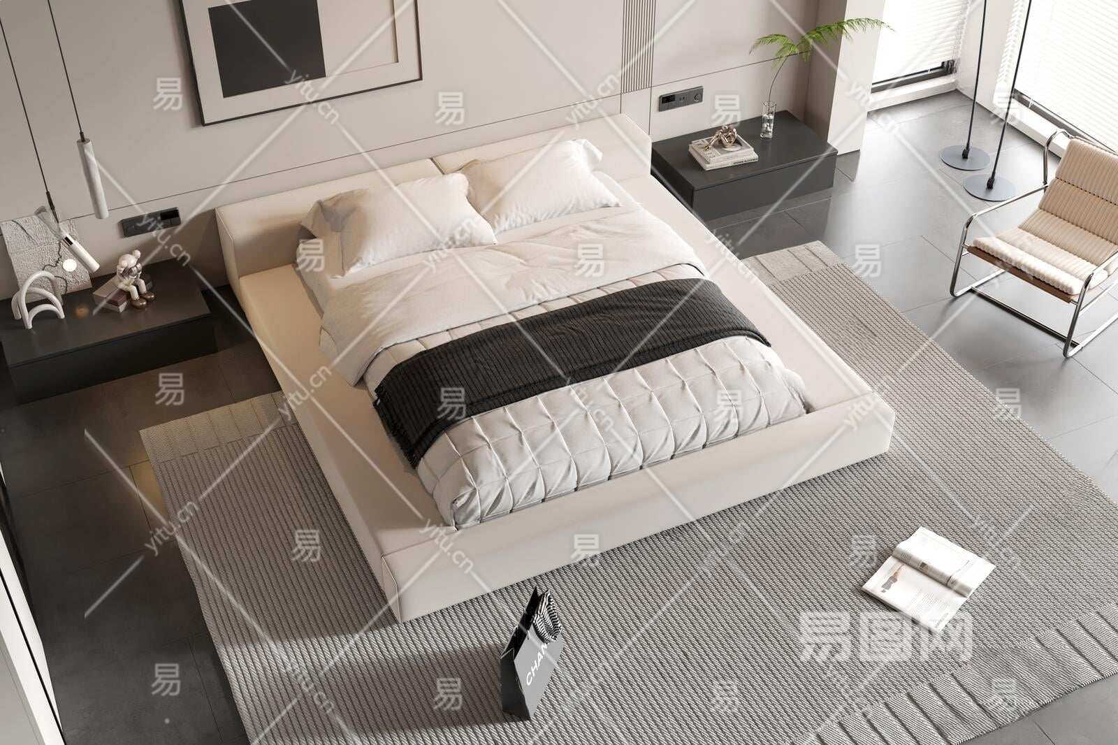 现代双人床3D模型下载