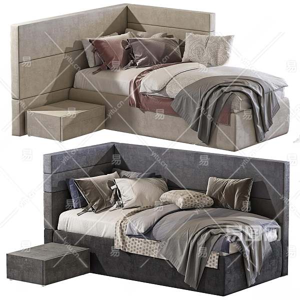 现代单人床3D模型下载