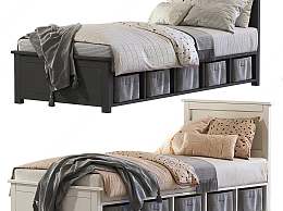 美式单人床3D模型下载