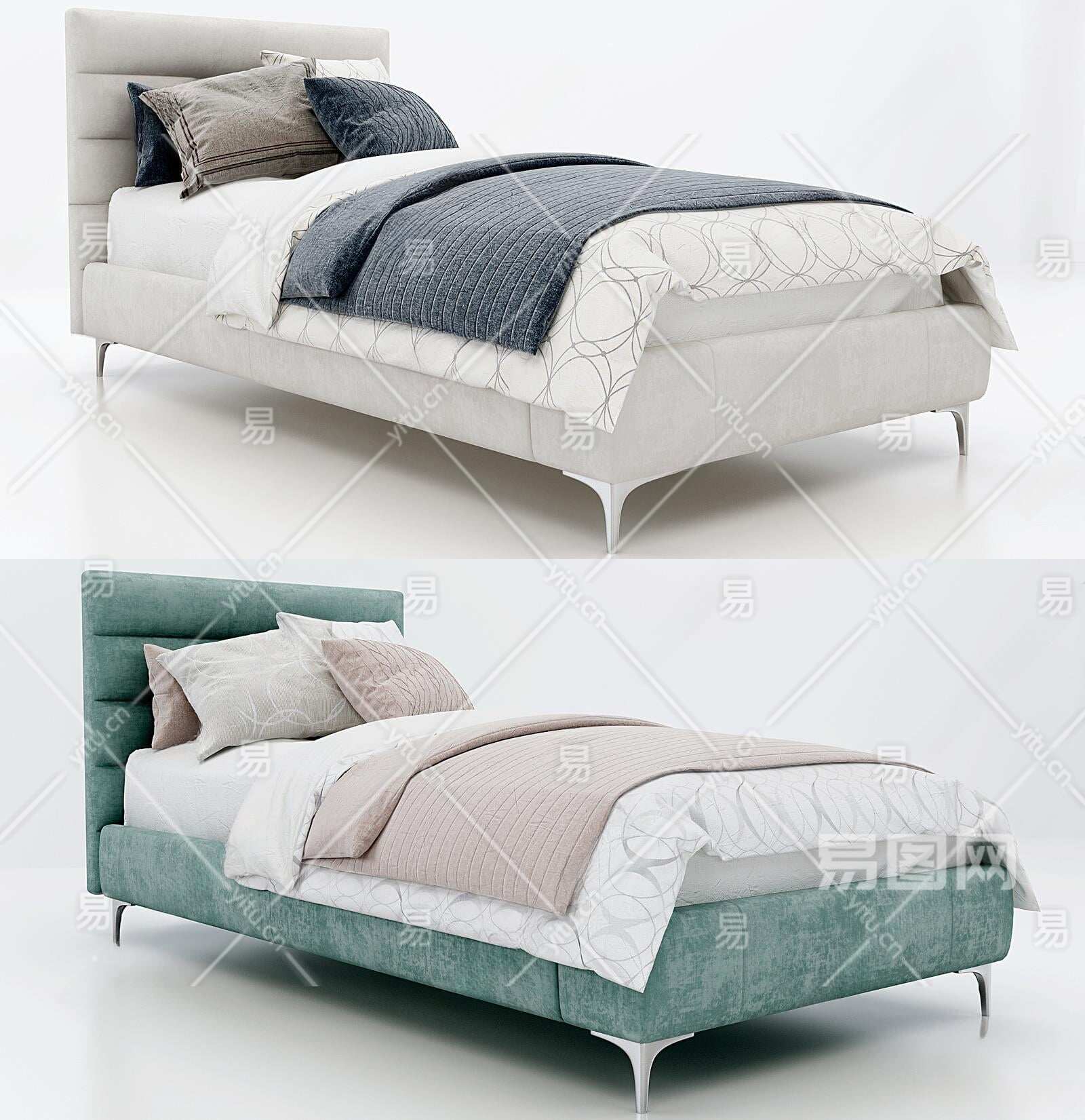 现代单人床3D模型下载