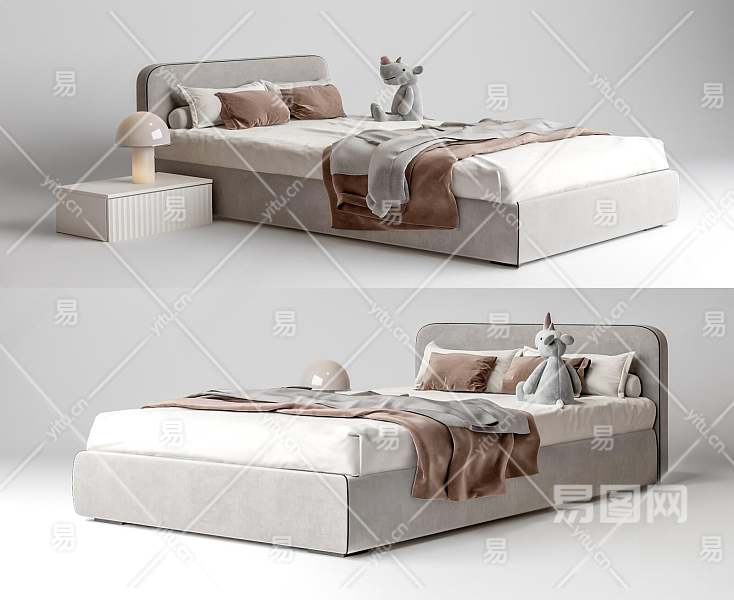 现代单人床3D模型下载