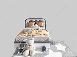 现代单人床3D模型下载