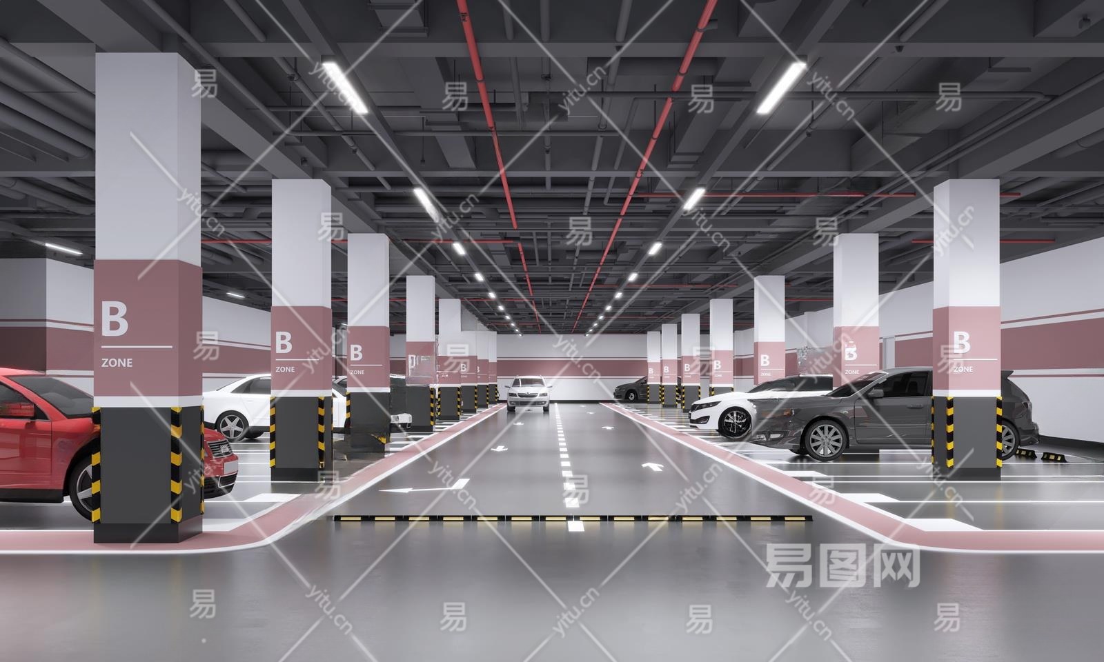 现代地下车库3D模型下载