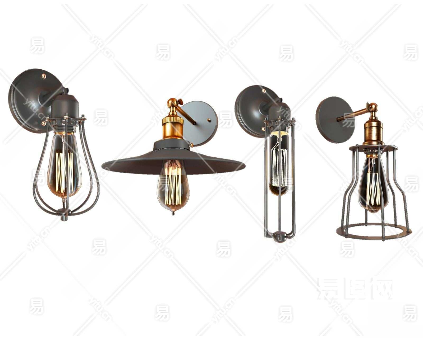 工业风壁灯3D模型下载