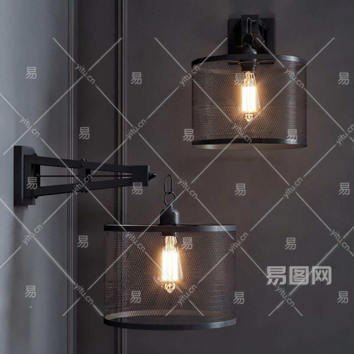 工业风铁笼罩壁灯3D模型下载