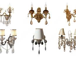 欧式古典水晶壁灯组合3D模型下载