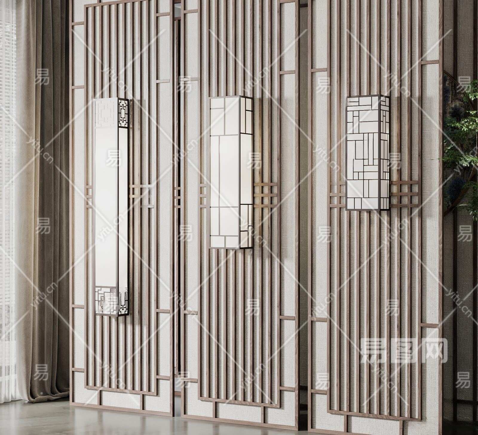 新中式壁灯组合3D模型下载