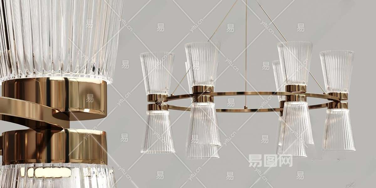 现代金属多头吊灯3D模型下载