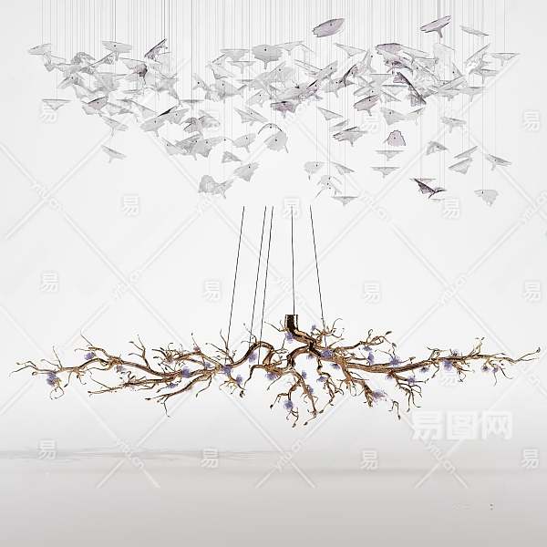现代大型艺术吊灯3D模型下载