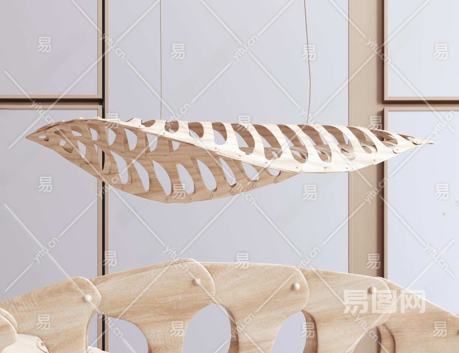 现代原木造型吊灯3D模型下载