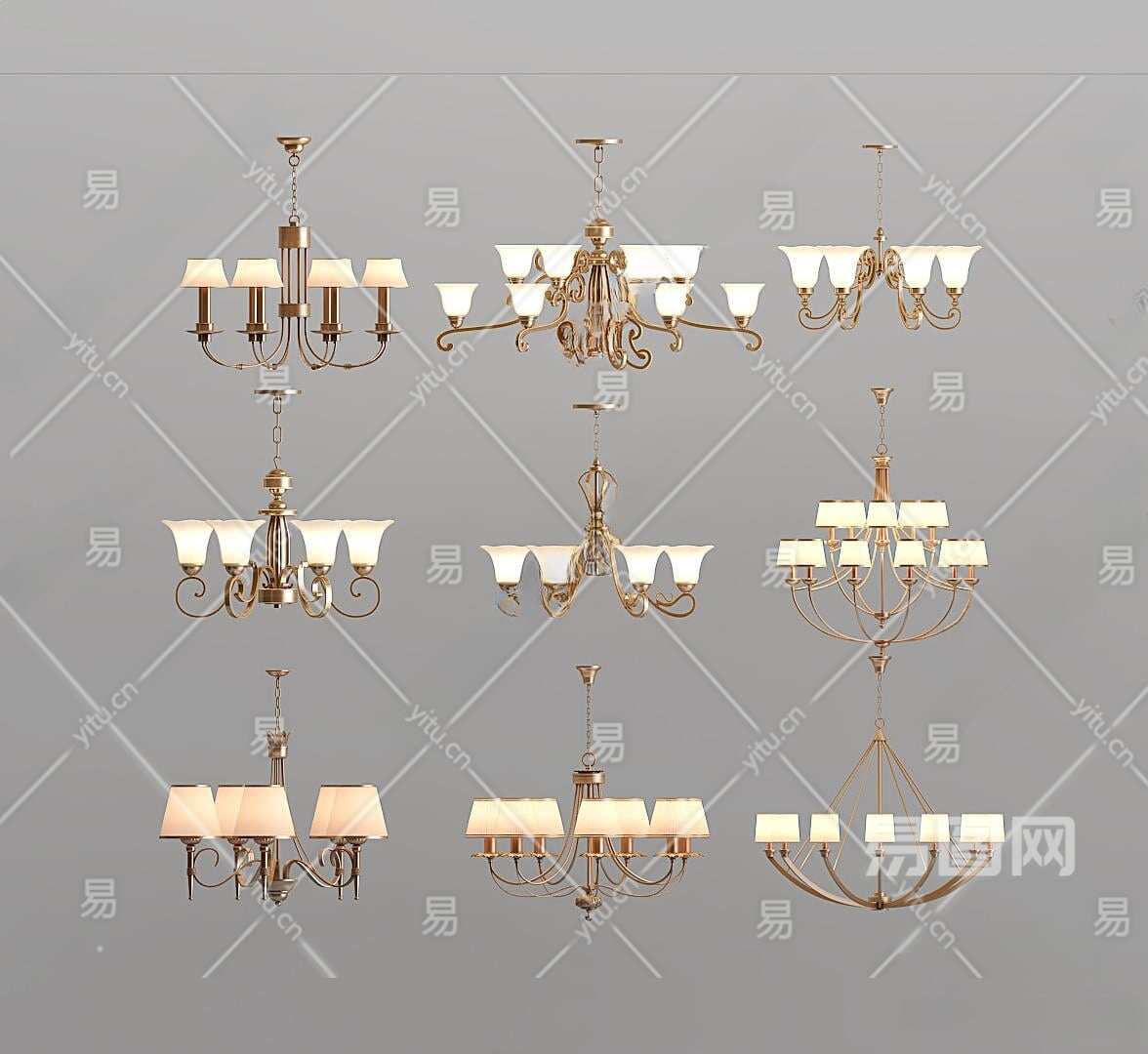 美式吊灯3D模型下载
