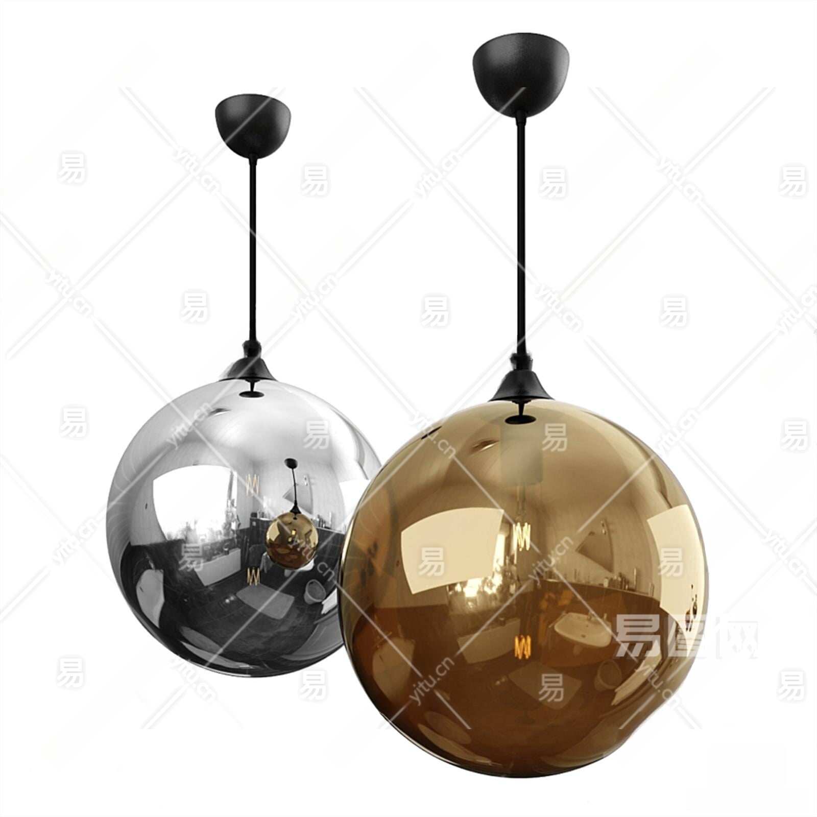 现代球形吊灯3D模型下载