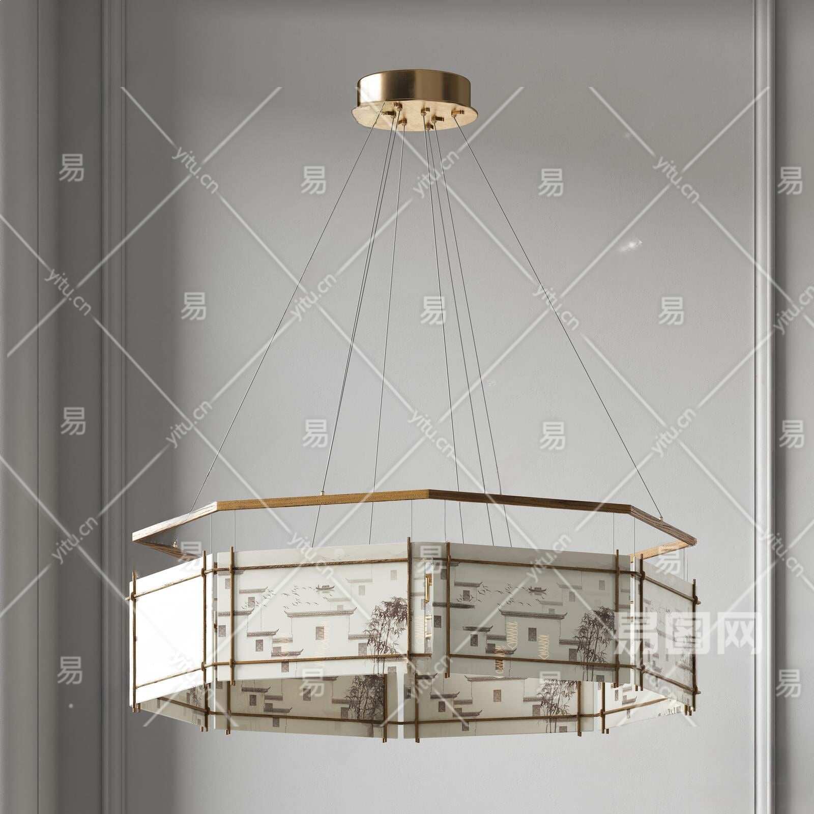 新中式吊灯3D模型下载