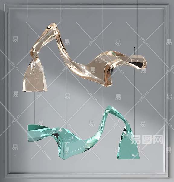 现代异型创意玻璃吊灯3D模型下载