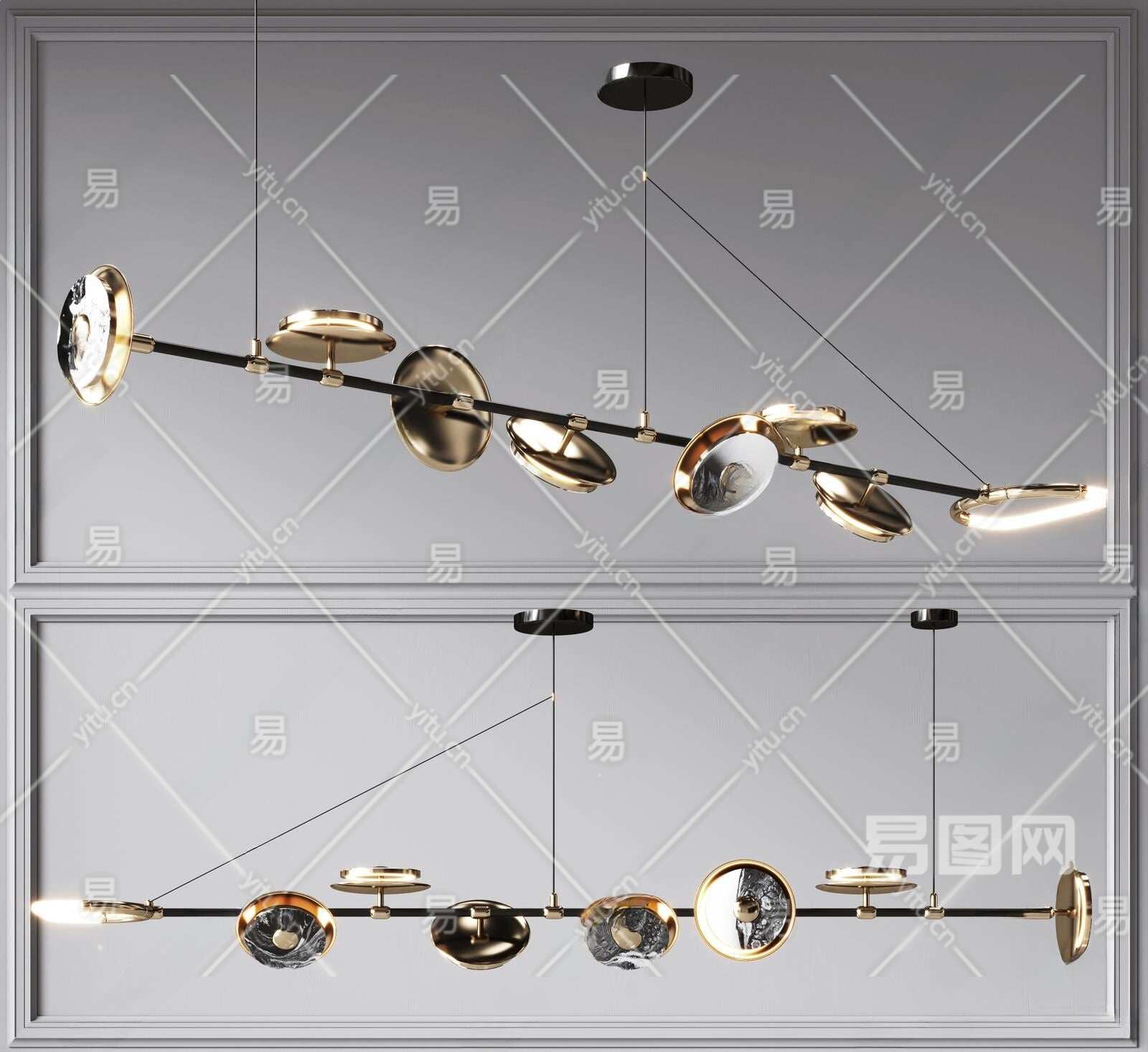 现代金属吊灯3D模型下载