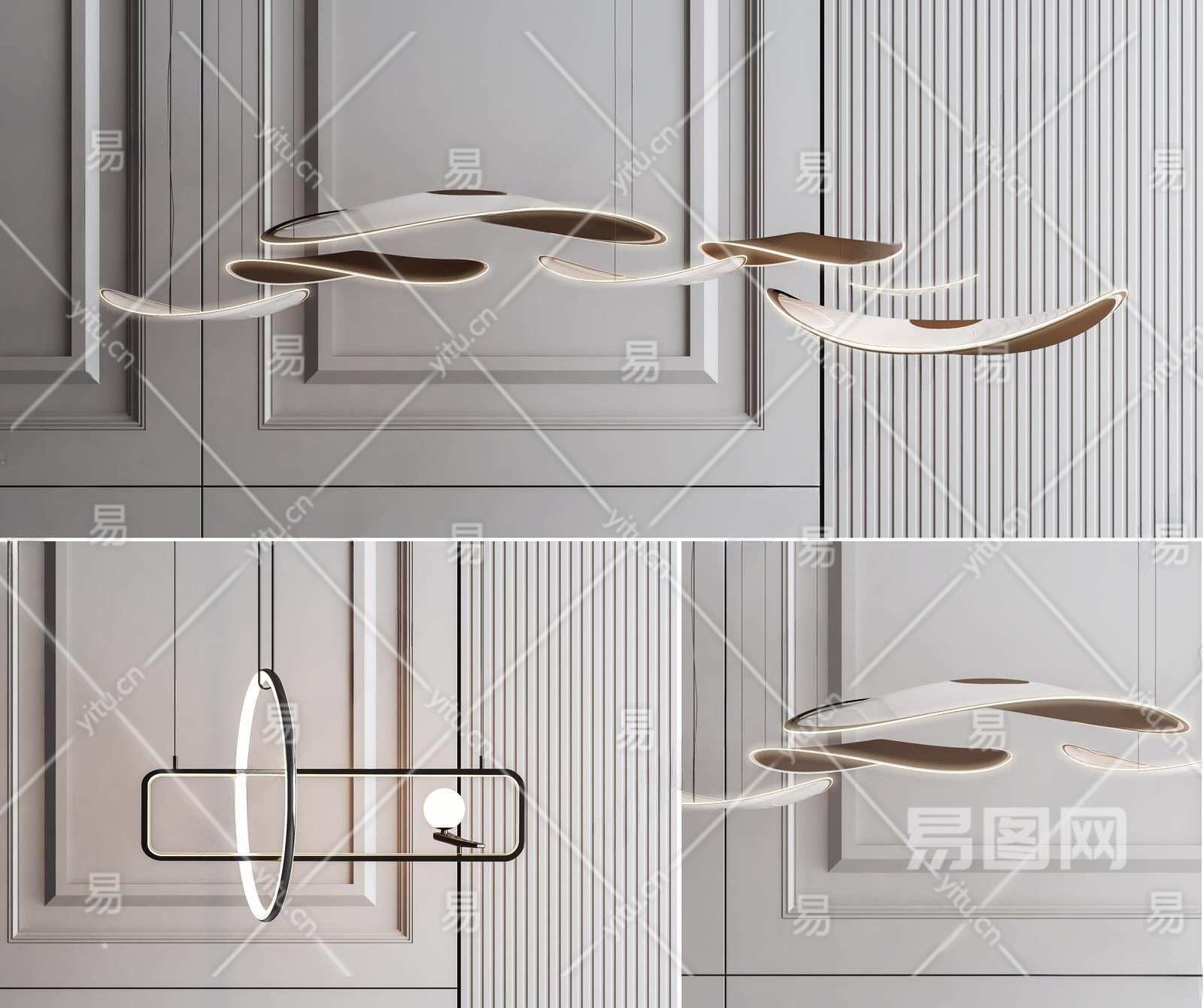 现代吊灯组合3D模型下载
