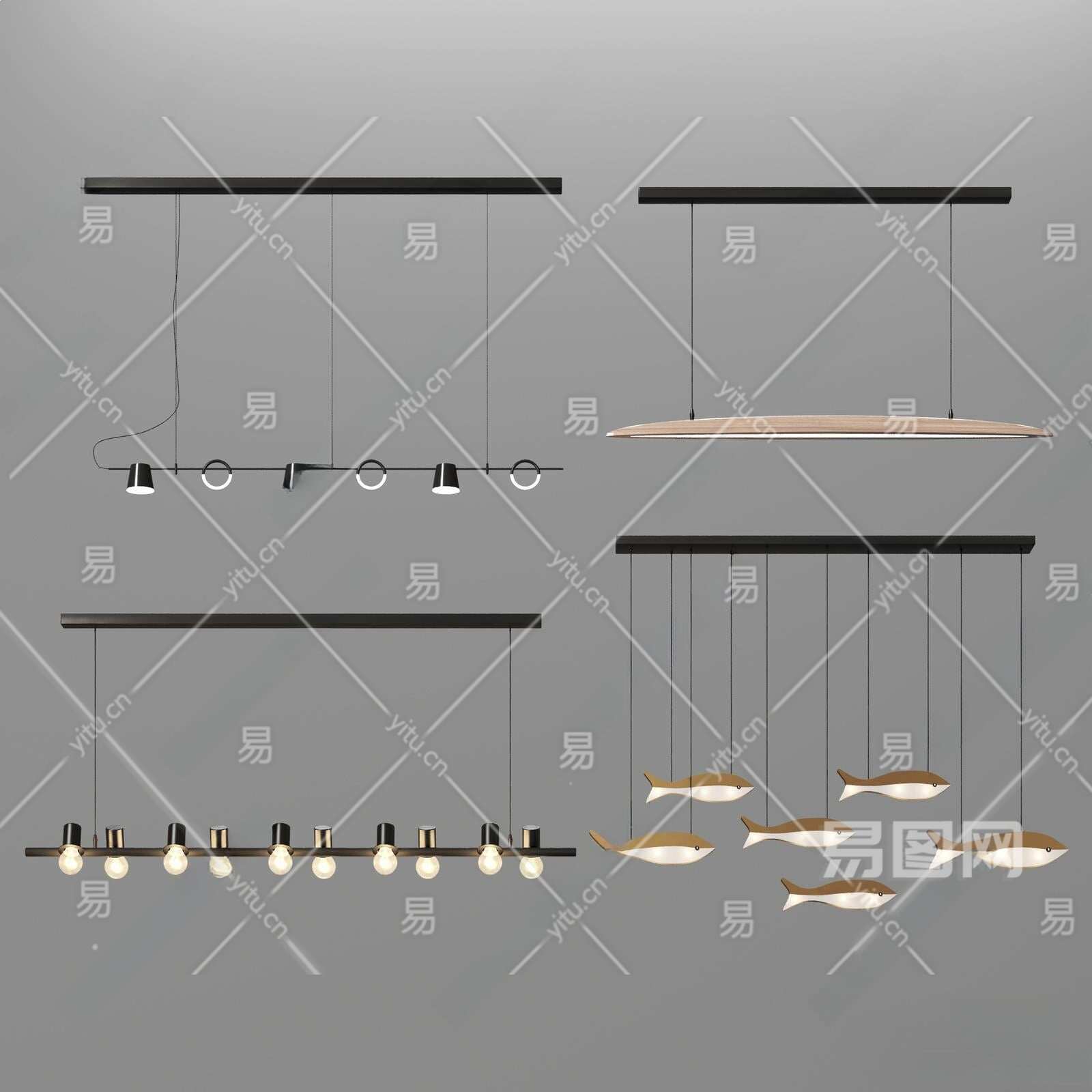 现代金属吊灯3D模型下载