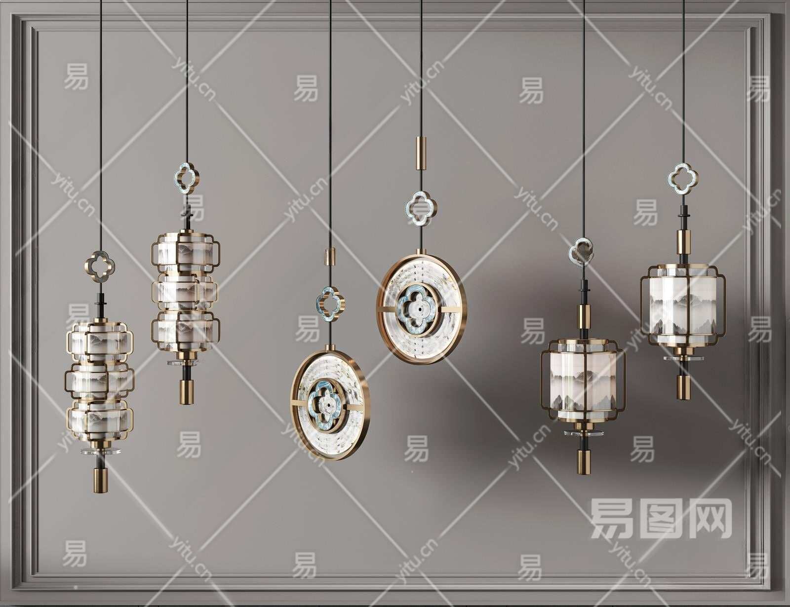 新中式吊灯组合3D模型下载