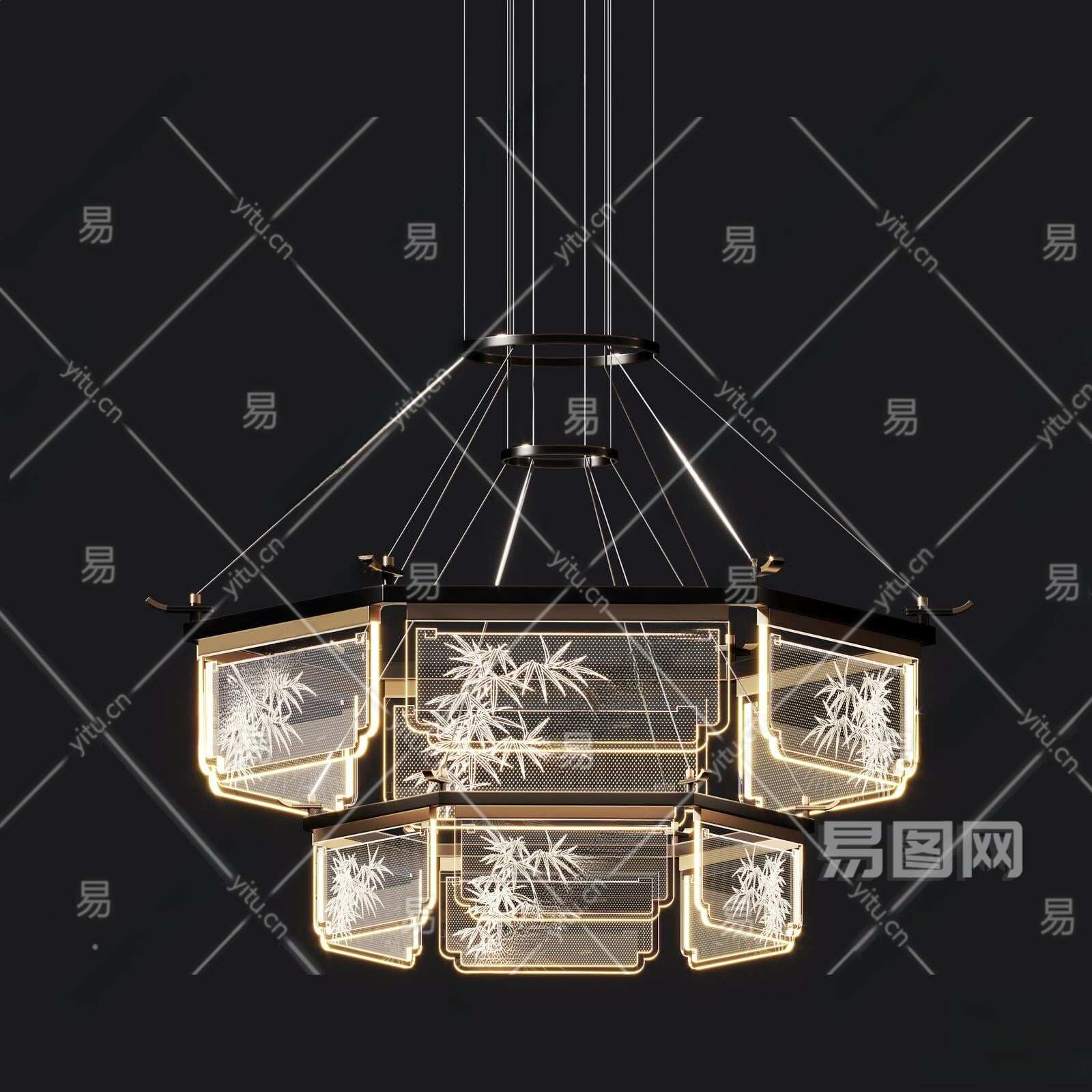 新中式吊灯3D模型下载