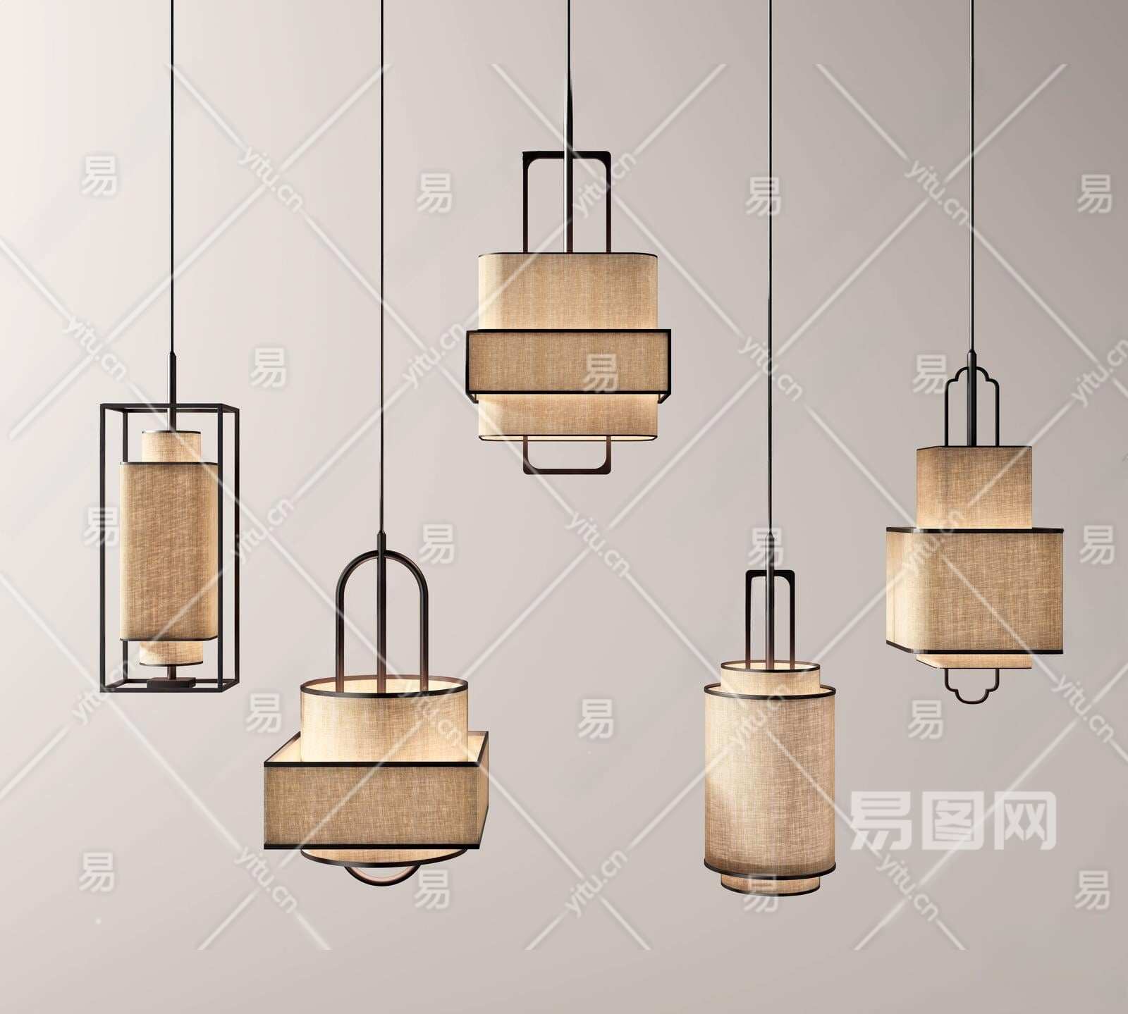 新中式吊灯3D模型下载