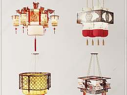 中式吊灯组合3D模型下载
