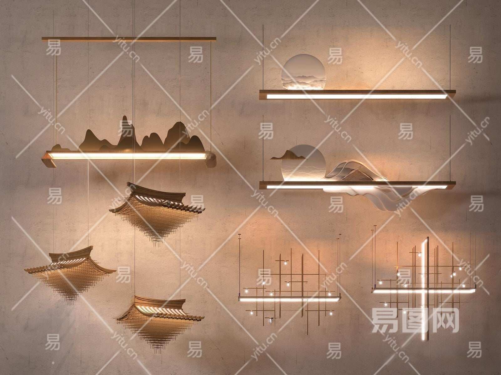新中式吊灯3D模型下载