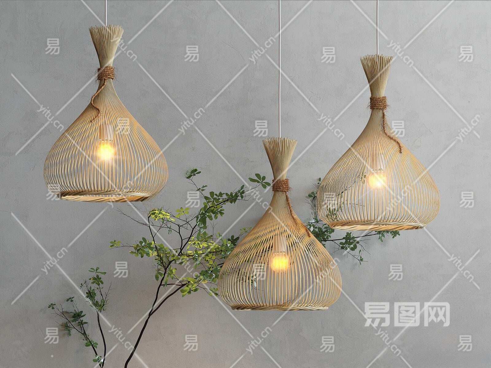 侘寂竹编吊灯3D模型下载