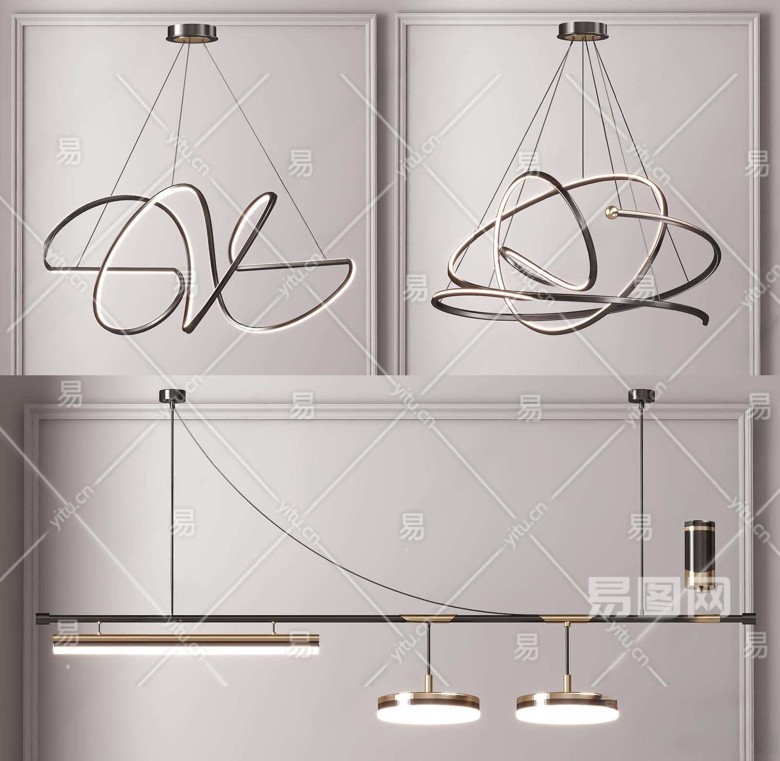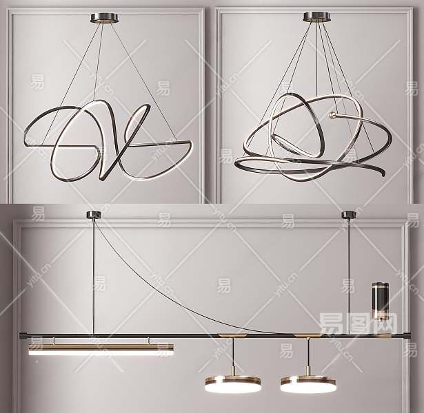 现代金属吊灯3D模型下载