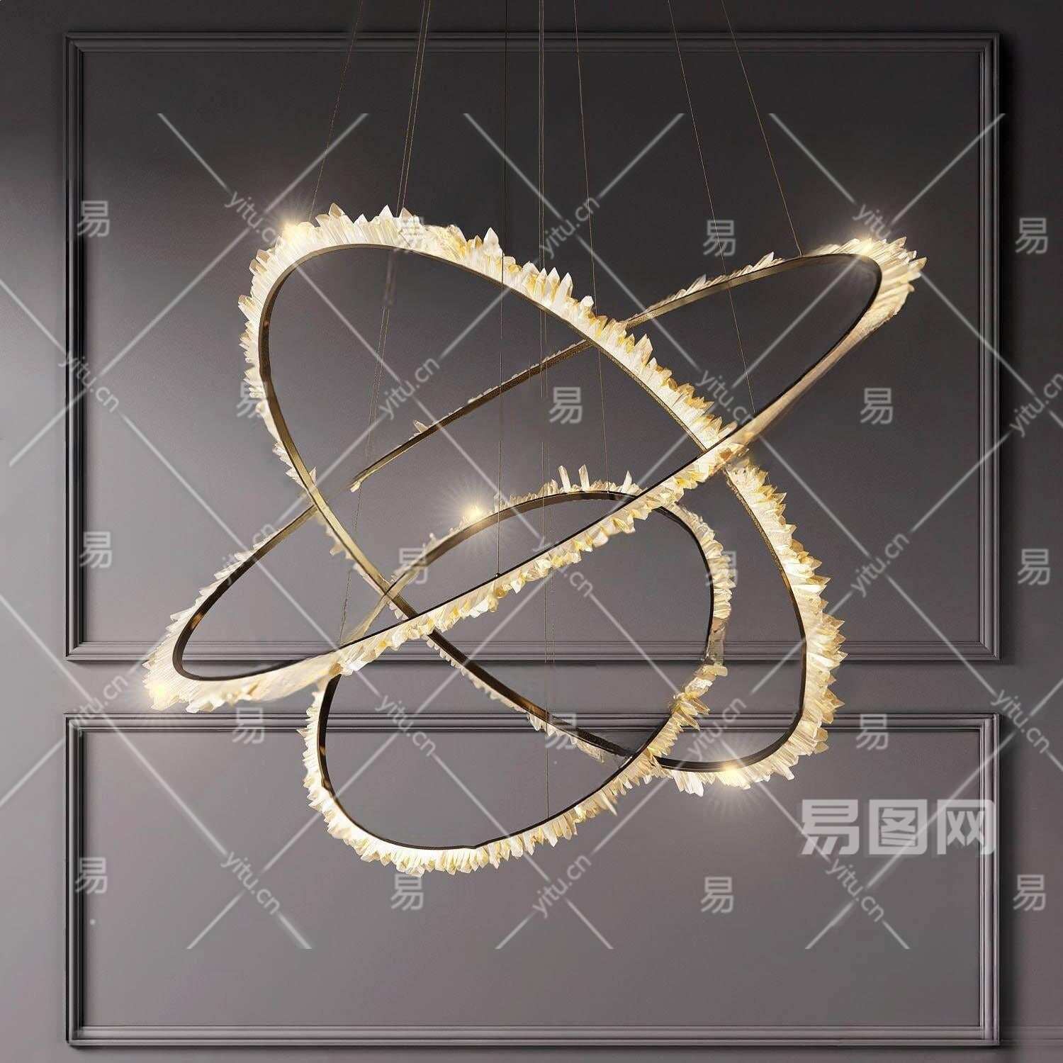 现代环形金属吊灯3D模型下载
