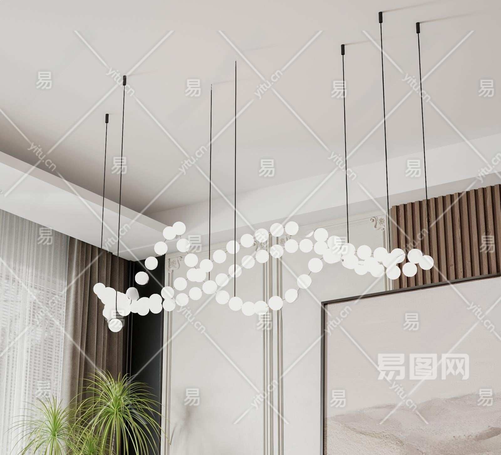现代餐厅艺术吊灯3D模型下载