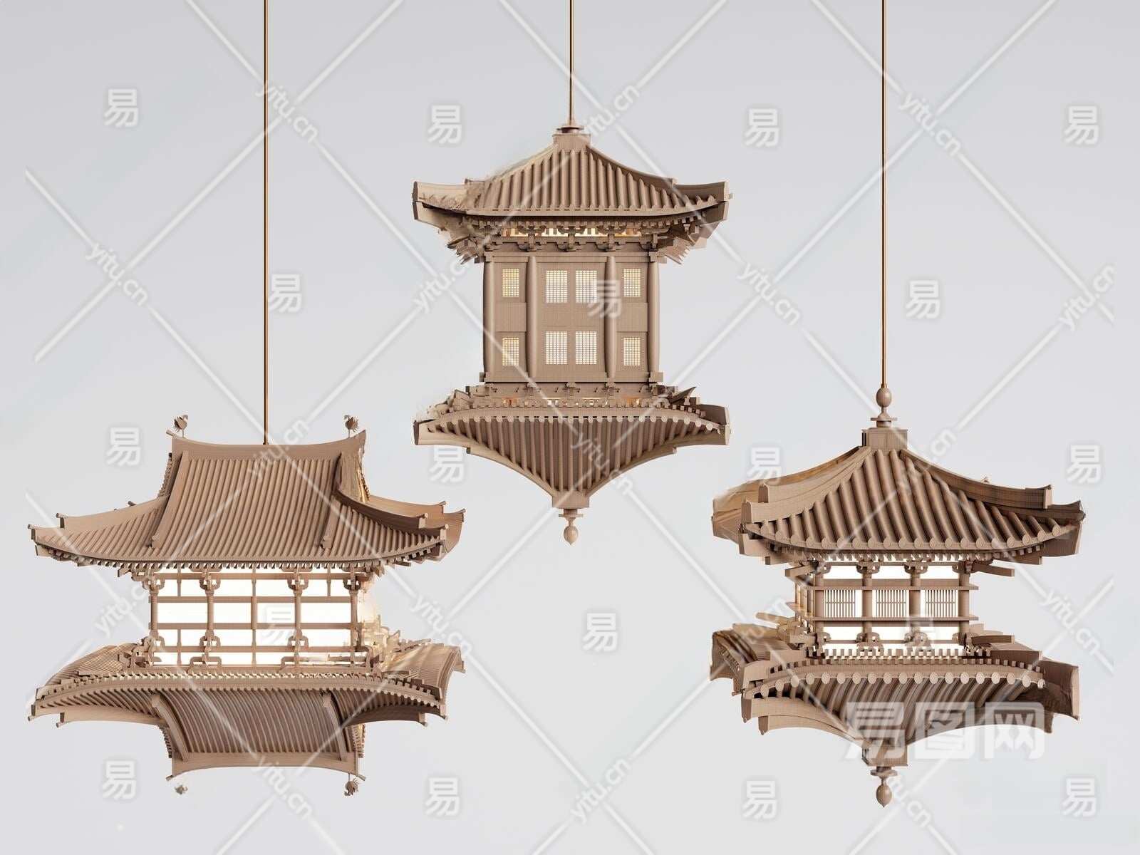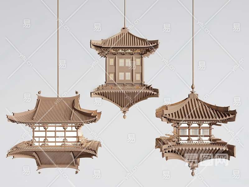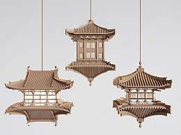 新中式古建筑吊灯3D模型下载