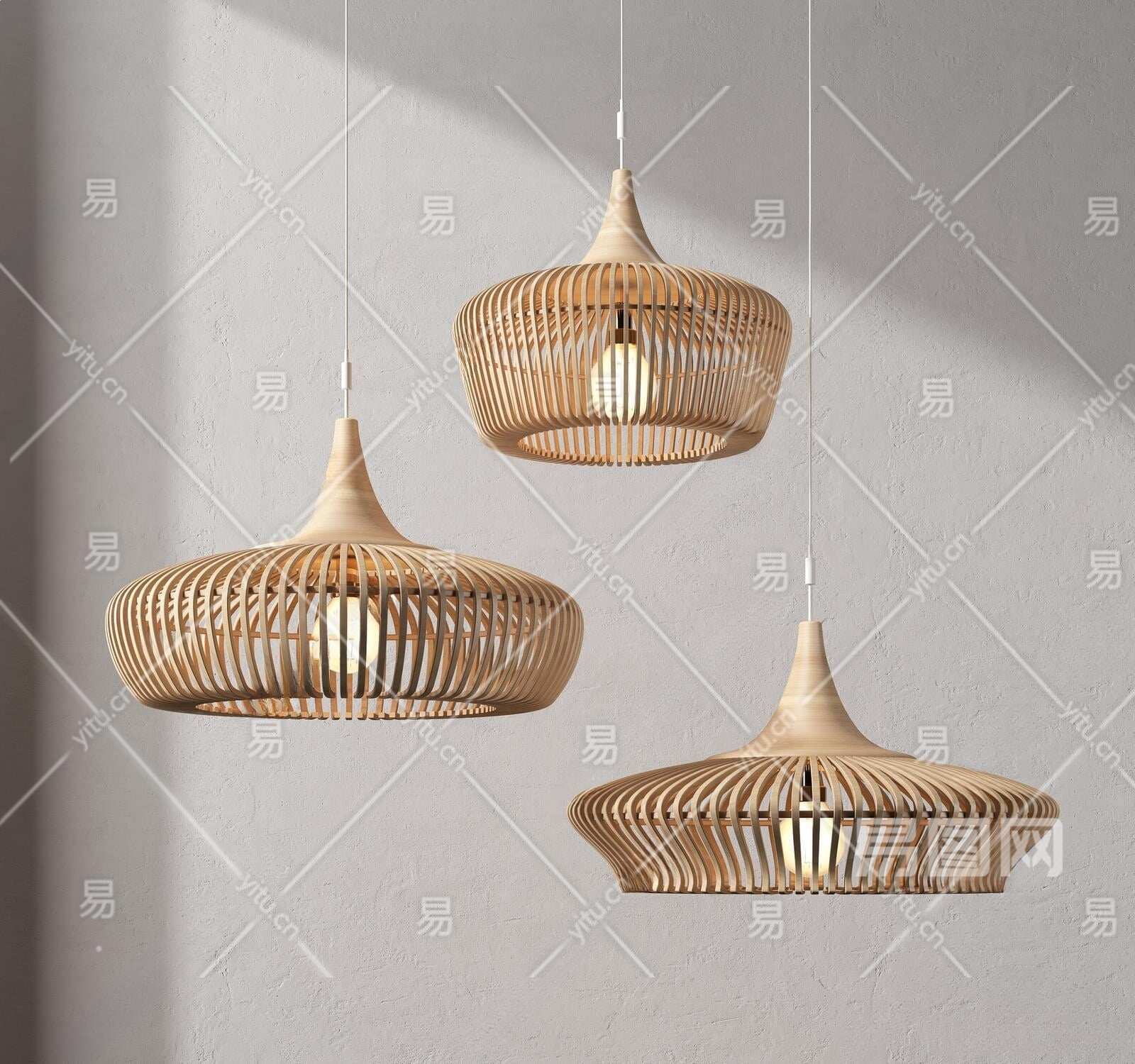 北欧木艺吊灯3D模型下载