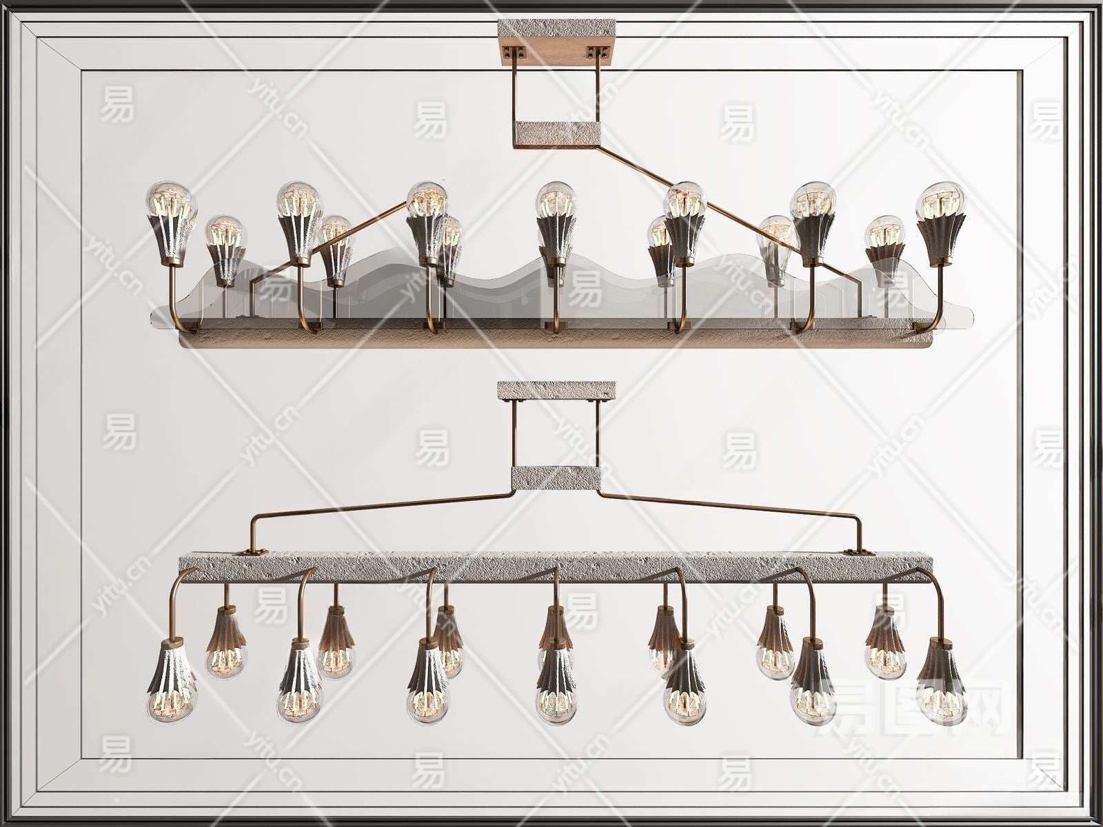 工业风长条多头吊灯3D模型下载