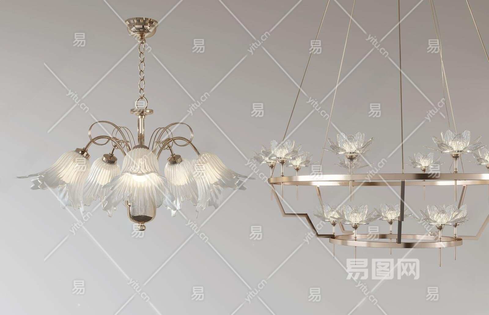 法式轻奢吊灯3D模型下载