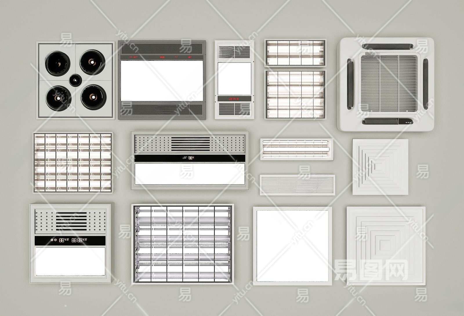 现代格栅灯3D模型下载