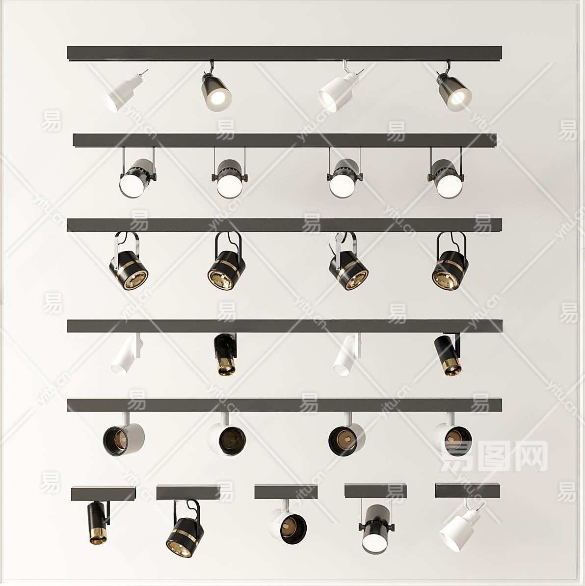 现代筒灯射灯组合3D模型下载