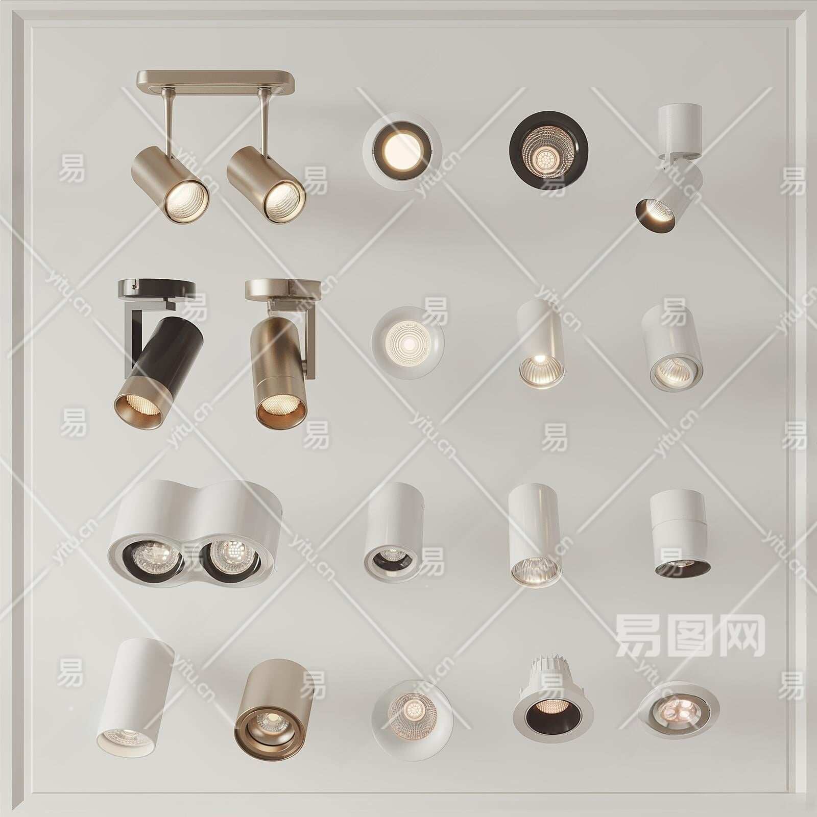 现代筒灯射灯3D模型下载