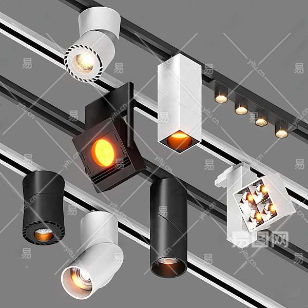 现代轨道射灯筒灯3D模型下载