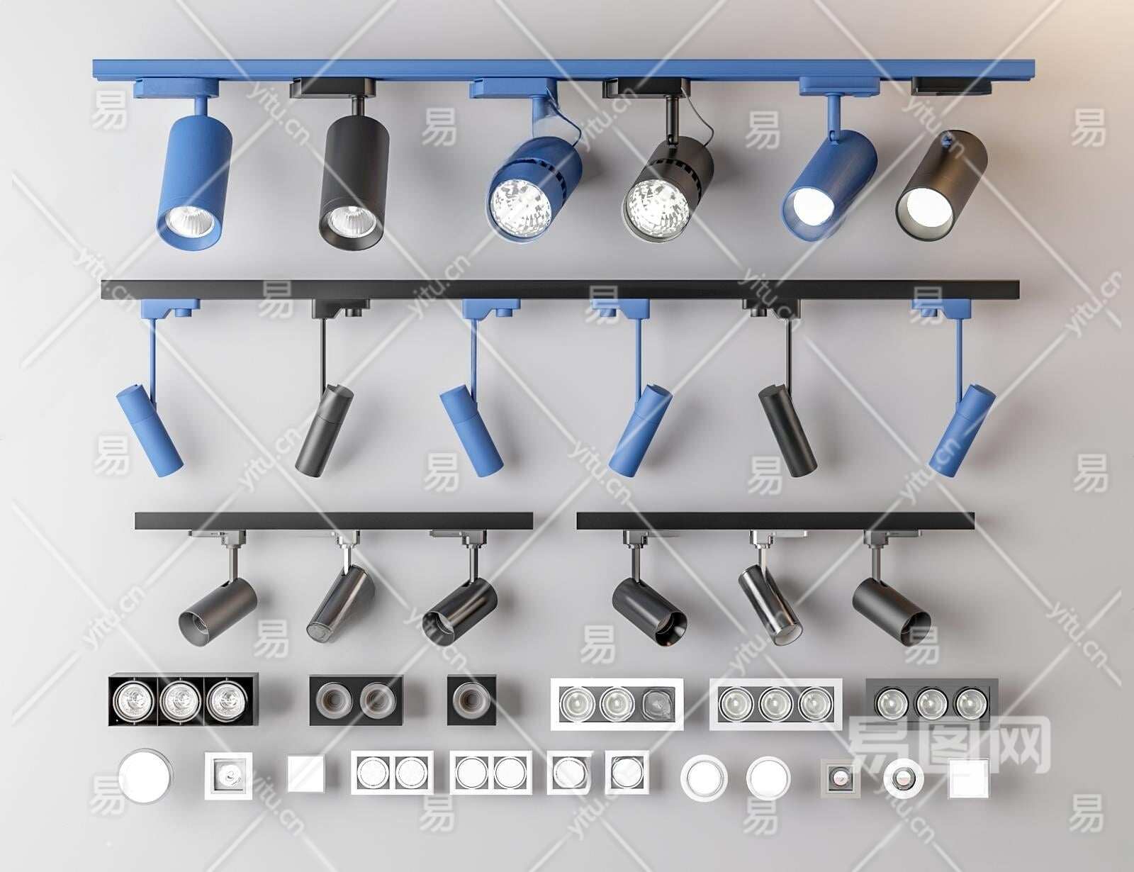 现代筒灯3D模型下载